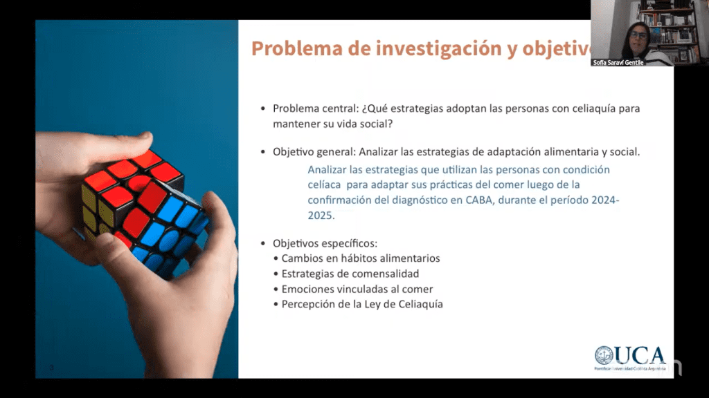 En el marco de la 45 °Jornada de Investigación Sociológica, la profesora Sofía Saraví Gentile brindó una charla sobre las estrategias de personas celíacas para ensamblar la vida social y la dieta luego del diagnóstico.