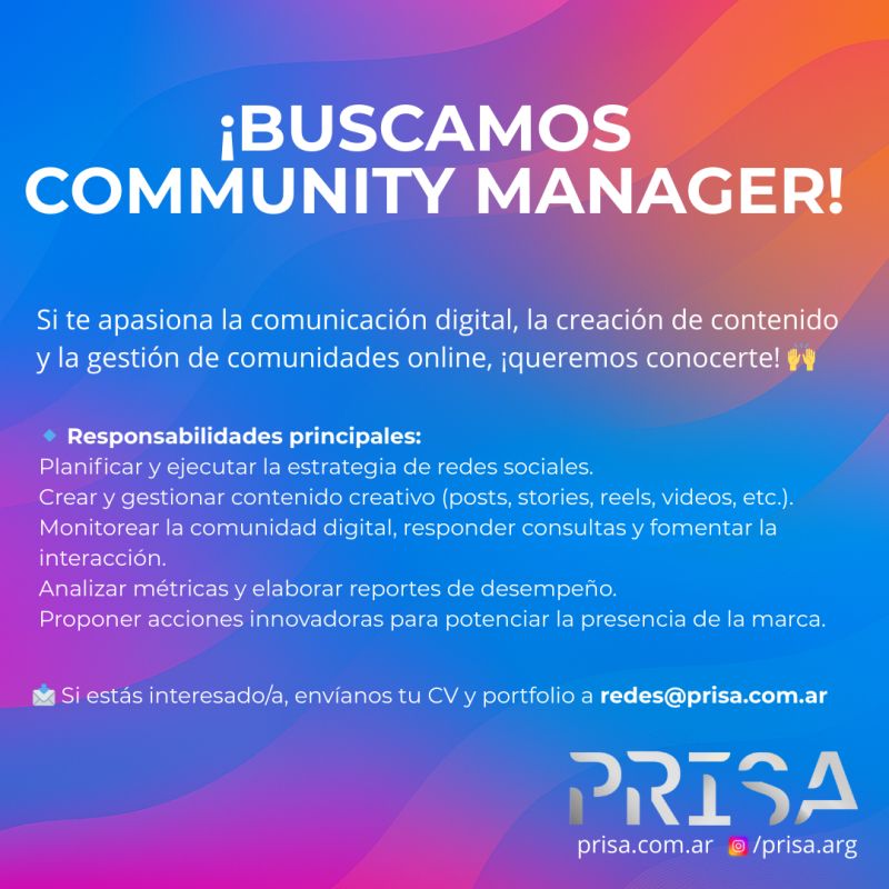 En IG Producciones seguimos creciendo como agencia de contenidos digitales y queremos ampliar nuestro equipo. Estamos buscando distintos perfiles para sumarse a proyectos que no paran de crecer: 🎥 FilmmakersIdealmente con equipos propios.Cobertura de eventos, testimonios y entrevistas en CABA y Gran Buenos Aires.Si además editan su propio material, ¡mucho mejor! 🗂️ Account ManagersCoordinación directa […]