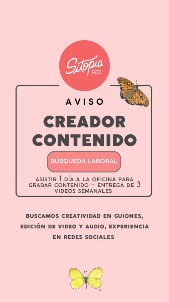 ¡Estamos buscando a nuestro/a próximo/a creador/a de contenido!Queremos sumar al equipo a alguien con ganas de contar las historias que viven en nuestra isla urbana 💚. Estamos buscando una persona creativa y apasionada, que disfrute crear y se anime a producir contenido de calidad que refleje nuestro espíritu botánico, regenerativo y comunitario. 🌿 ¿Qué vas […]
