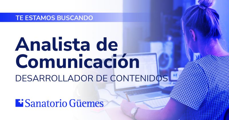 ¡Estamos buscando un/a Analista de Comunicación para sumarse a nuestro equipo! En Sanatorio Güemes, creemos en el poder de las palabras y las ideas para conectar con las personas. Buscamos un desarrollador/a de contenidos que nos ayude a transmitir nuestra esencia, tono y valores a través de mensajes impactantes. 💡 ¿Qué harás en este rol?✔ […]