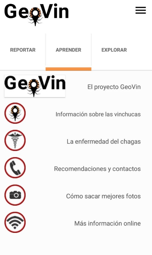 GeoVin funciona a partir de la participación ciudadana: los usuarios que encuentran un insecto pueden detectar si lo que vieron es una vinchuca, y en caso de serlo, de qué tipo de especie se trata, con información sobre el insecto y fotos de gran calidad.