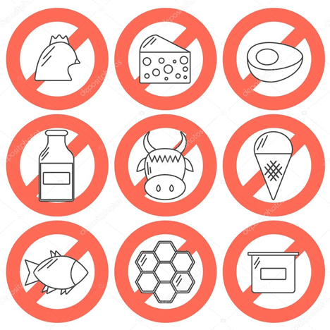 Cualquier alimento derivado de animal o que sea un animal en sí, no puede formar parte de la dieta vegana. Algunos de ellos son: