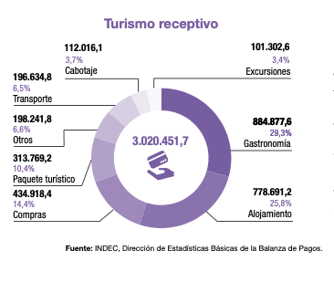 Según el Ente de Turismo de la Ciudad de Buenos Aires, casi un tercio del gasto de los turistas no residentes en la ciudad corresponde a Gastronomía (29.3%), consolidándola como el principal rubro de consumo por encima del alojamiento (25.8%) y las compras (14.4%).